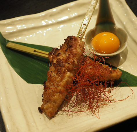 撮りミンチのつくねに、豚耳のチップを20%練りこみコリコリした食感をつけました。コラーゲンチャージにも!